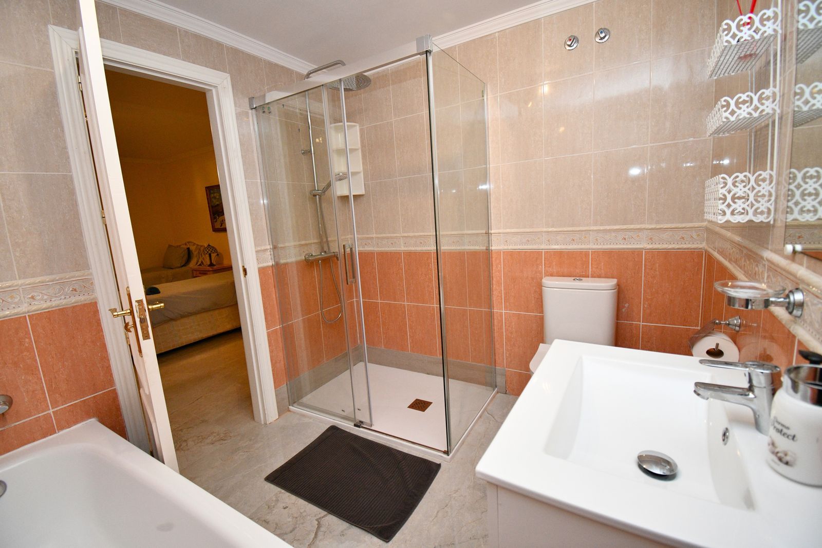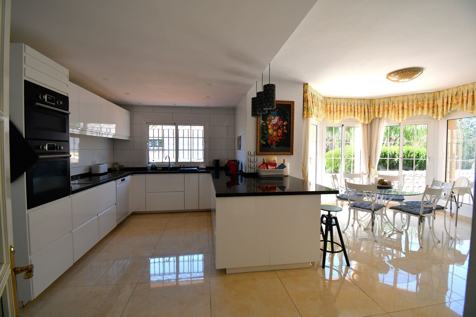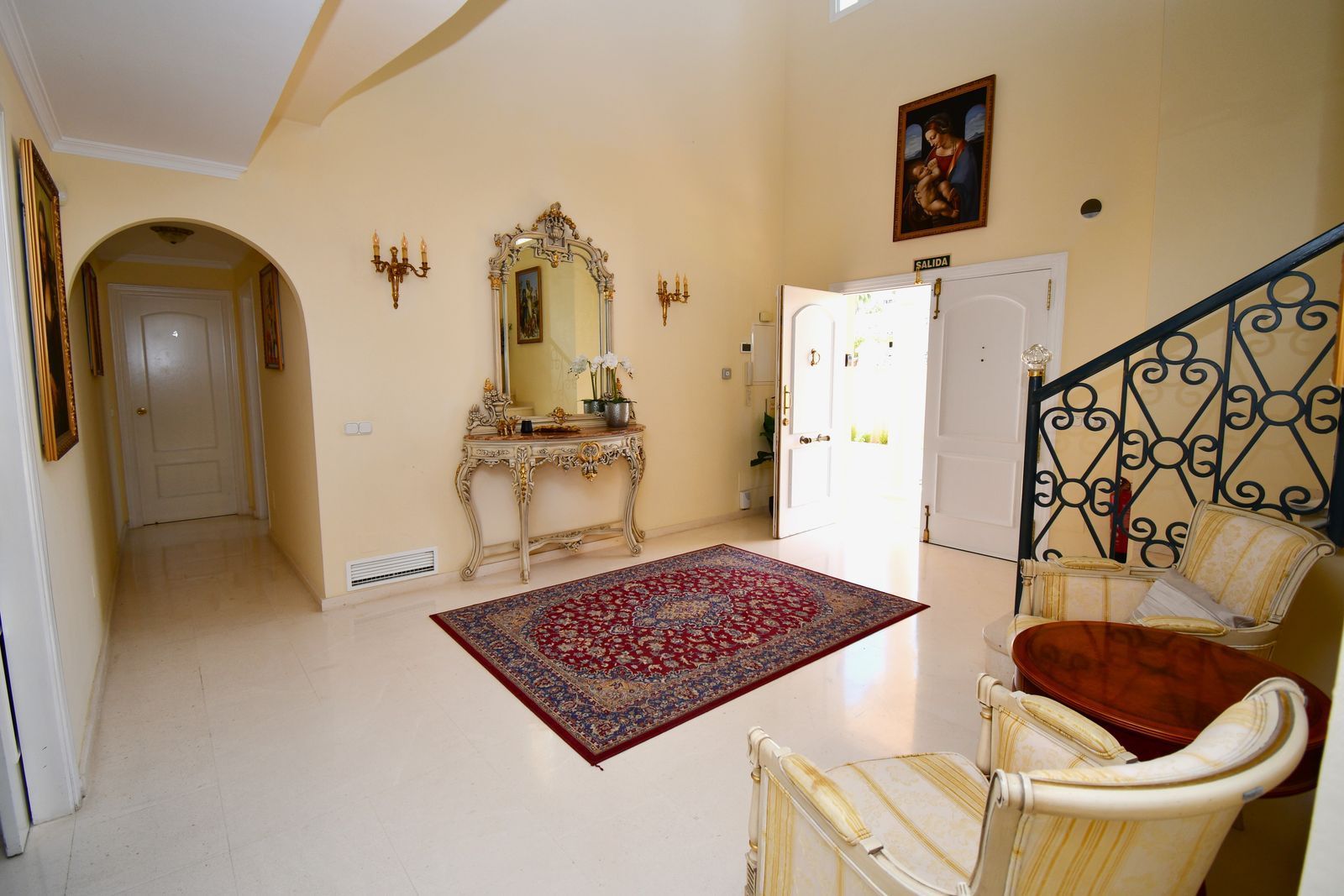 The villa is in the sort after area of Mijas Golf and has views of the beautiful Mijas Mountains.  The gardens surround the villa offering plenty of outside space.  There is a large terrace overlooking the pool.  This terrace offers plenty of seating and a BBQ area.  From the terrace, a staircase takes you down to the lower terrace and the pool area.  The pool is heated, so ideal for the cooler months.  The terrace surrounding the pool is made up of a large sunbathing area, as well as seating areas.  Ideal to just relax and unwind.   From this level you will find stairs taking you down to the lawned garden.  Tropical plants and fruit trees complete this outdoor paradise.