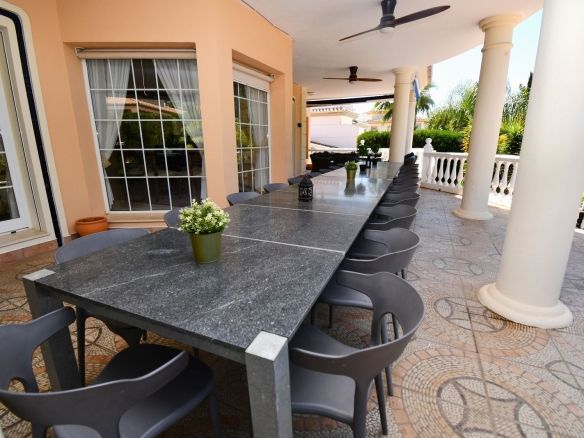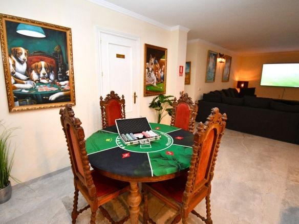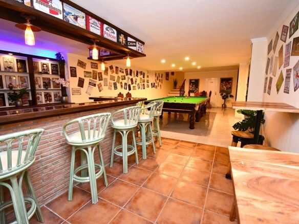 This impressive, front-line golf, 9 bedroom, 10 bathroom villa offers over 700m2 of living and entertainment space and sits on a spacious plot of 1,300m2.  This villa has 8 ensuite bedrooms, offering family/guests their own space and privacy.  All indoor and outdoor furniture is included, as well as the snooker table, poker table, and 12 mountain bikes.  This villa offers a great investment opportunity. The property is currently run as a holiday rental business.  The business can be included in the sale price, if required.  The property has its LPO.
