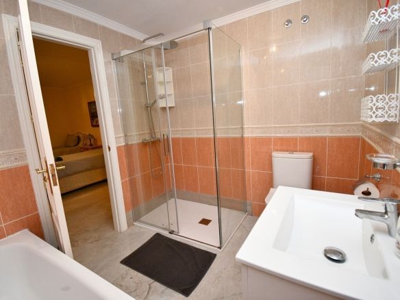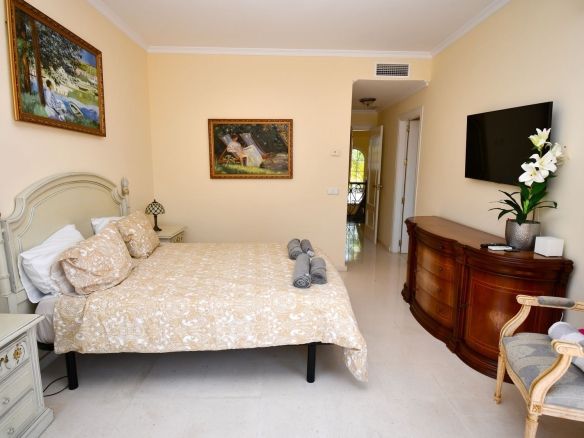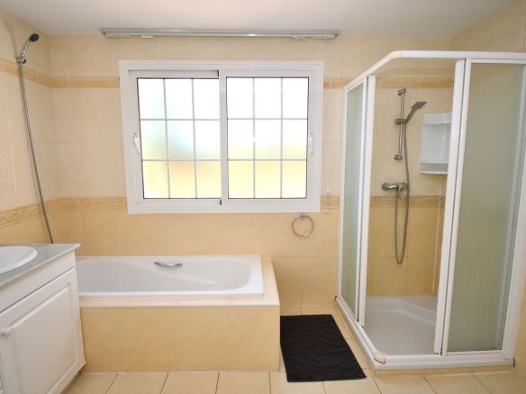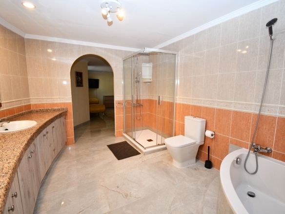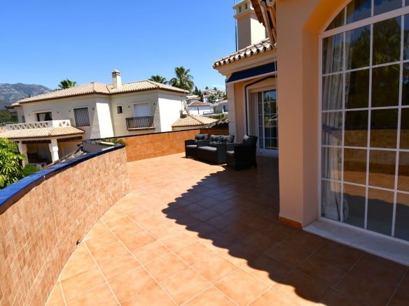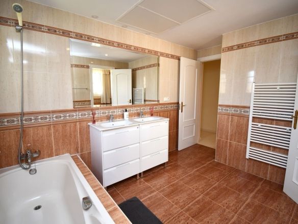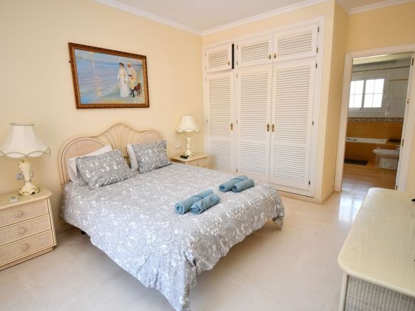 On the upper floor you will find 2 ensuite bedrooms, both with doors leading to the large upper terrace, offering amazing views of the mountains and golf course.