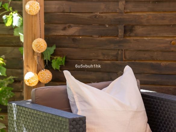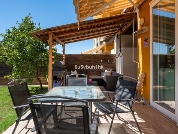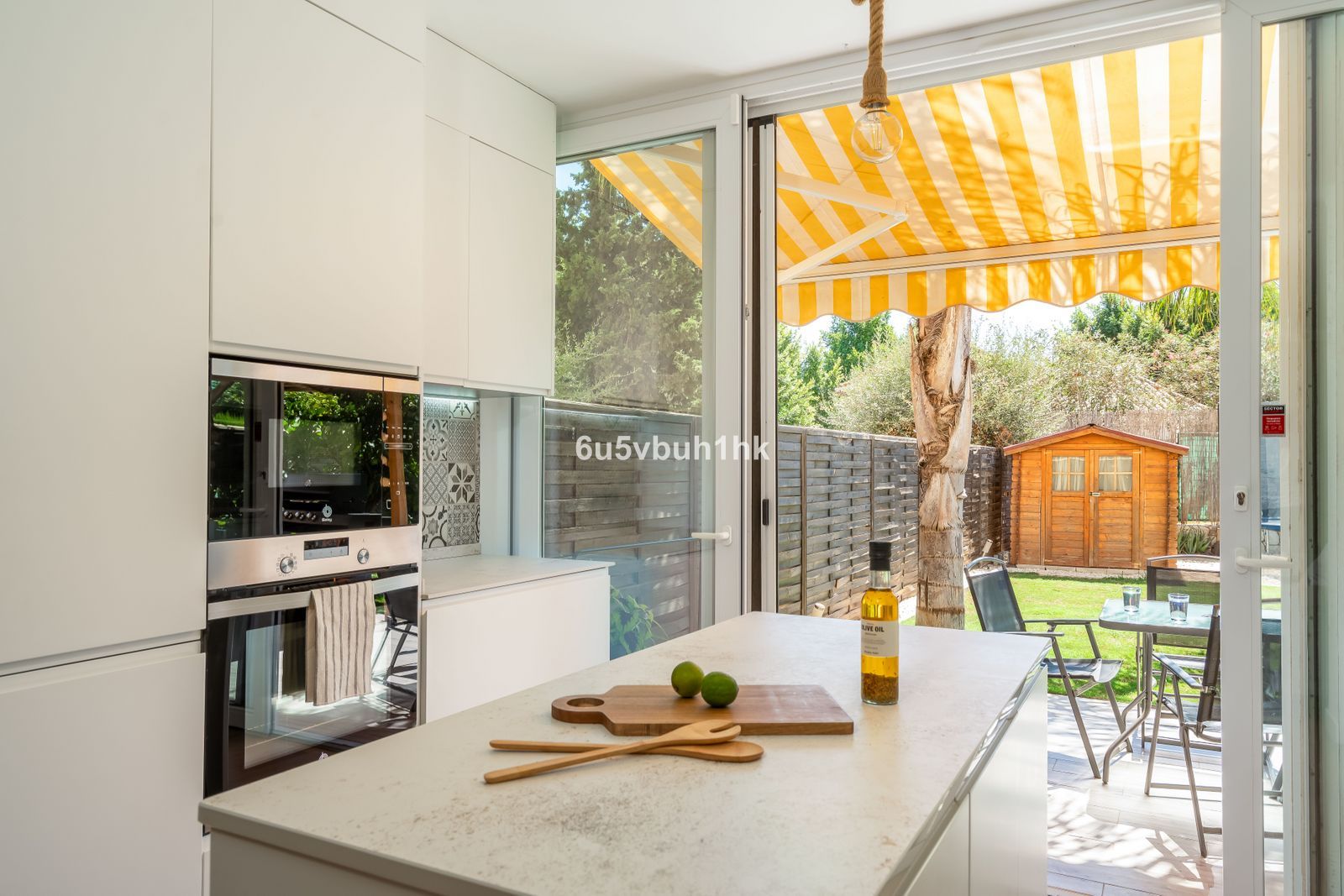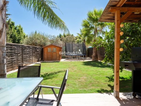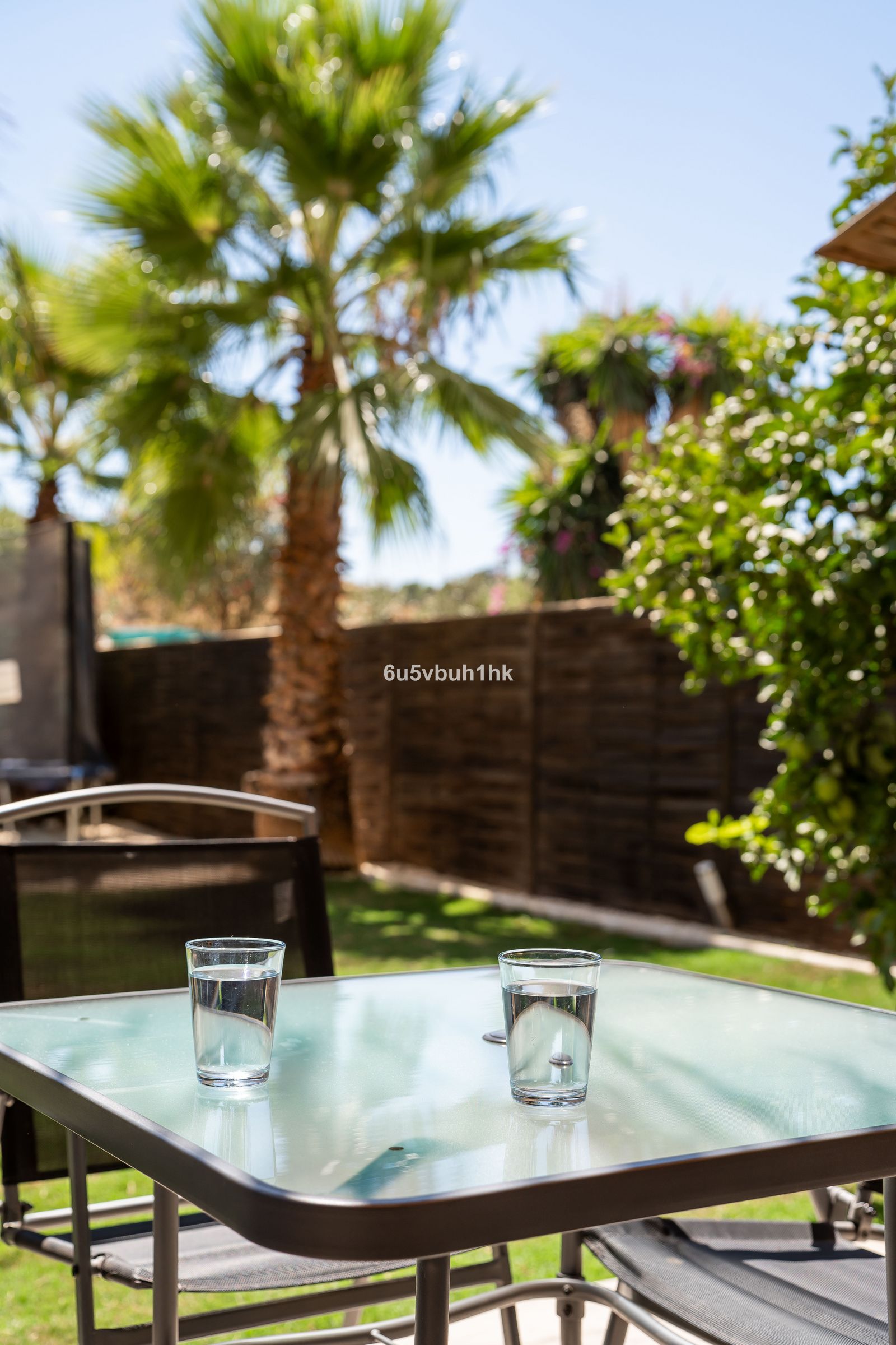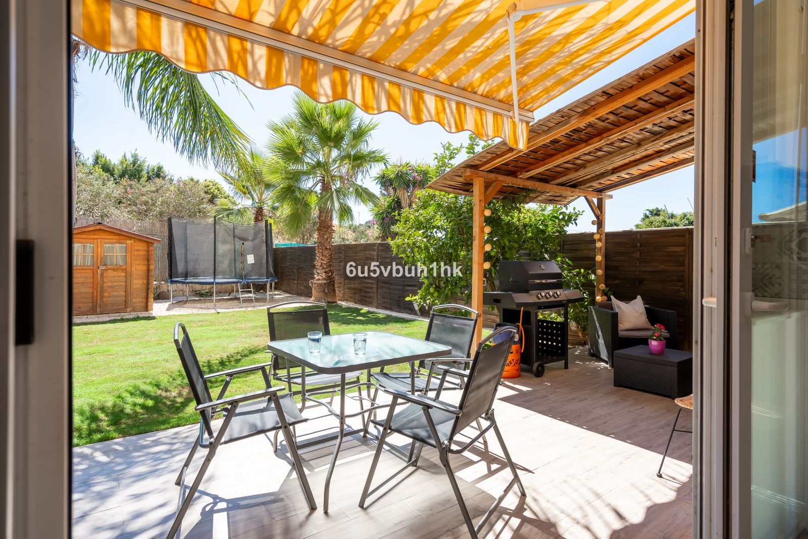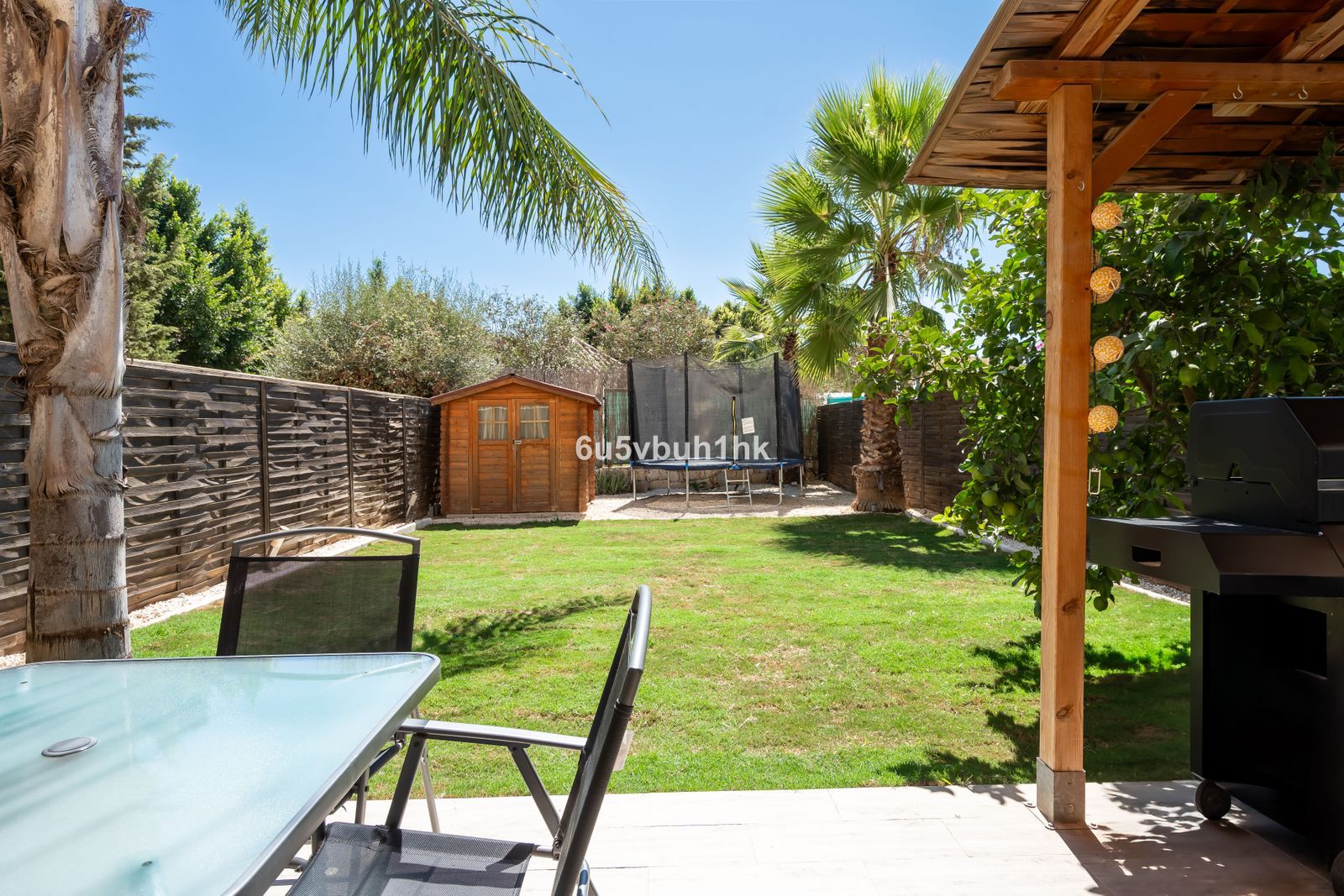 In the 100 m² garden, there’s a covered area ideal for a dining table, chill-out space, and laundry area, followed by a large open lawn with natural grass and views of El Esparragal countryside. The community offers several swimming pools, paddle courts, a social club, parking, and a storage room.