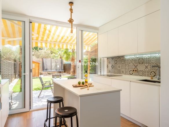 The property features 3 bedrooms (two of them double), and 2 bathrooms, one of which is en suite. The bright living room stands out, seamlessly connected to a fully renovated and equipped open-plan kitchen.