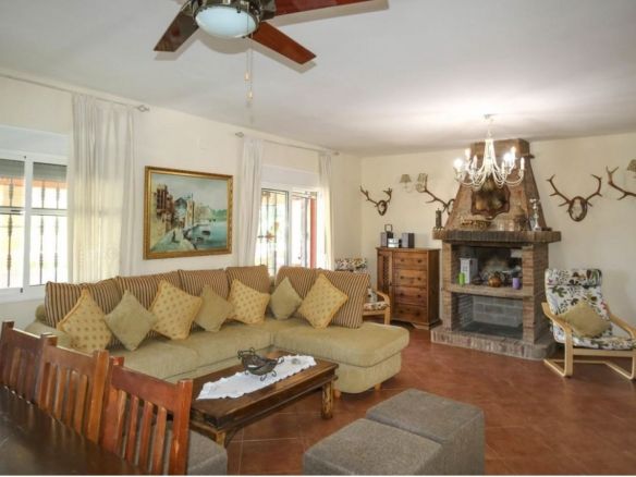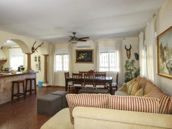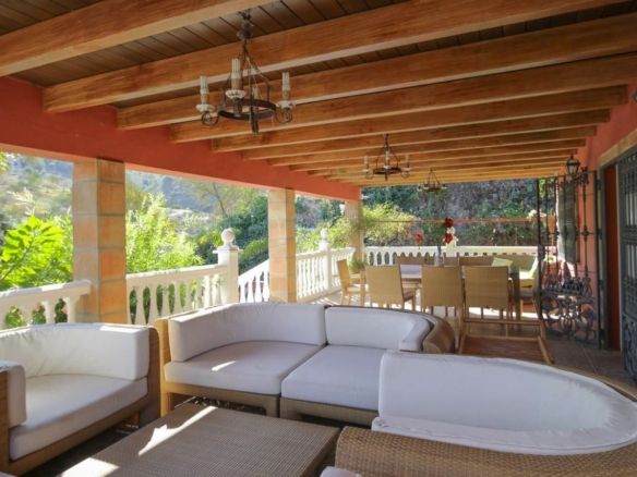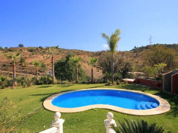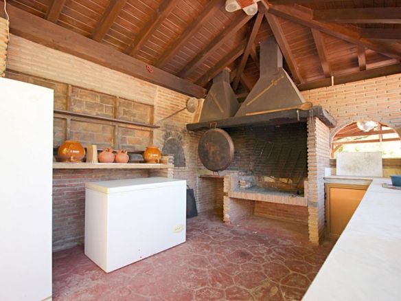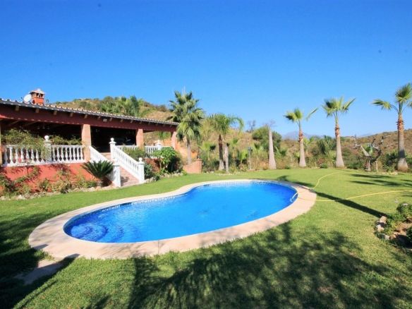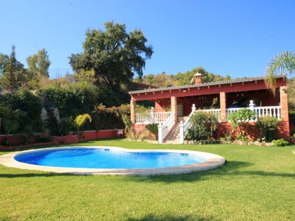 Opportunity at Bargain price! Lovely country house set between the picturesque Andalusian villages of Monda and Guaro, just a few kilometres away from Marbella, with stunning views over the countryside and the beautiful mountains of the Sierra de Las Nieves. A gated entrance drive leads up to the main house, the guest apartment and to a large patio with tropical roof, summer kitchen with bar and barbecue. The property comprises on the ground floor an entrance hall, a master suite, a spacious kitchen opening onto  a spacious living/dining room with fireplace with direct access to the large terrace and the pool area. Downstairs, there are 4 more spacious bedrooms, a bathroom and with a spacious lounge with fireplace.