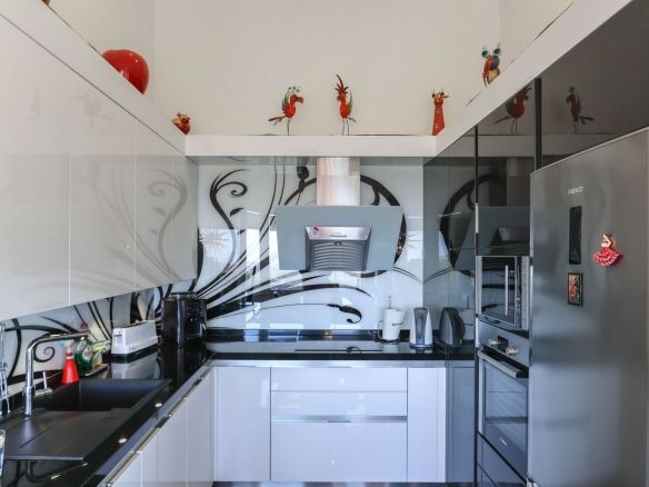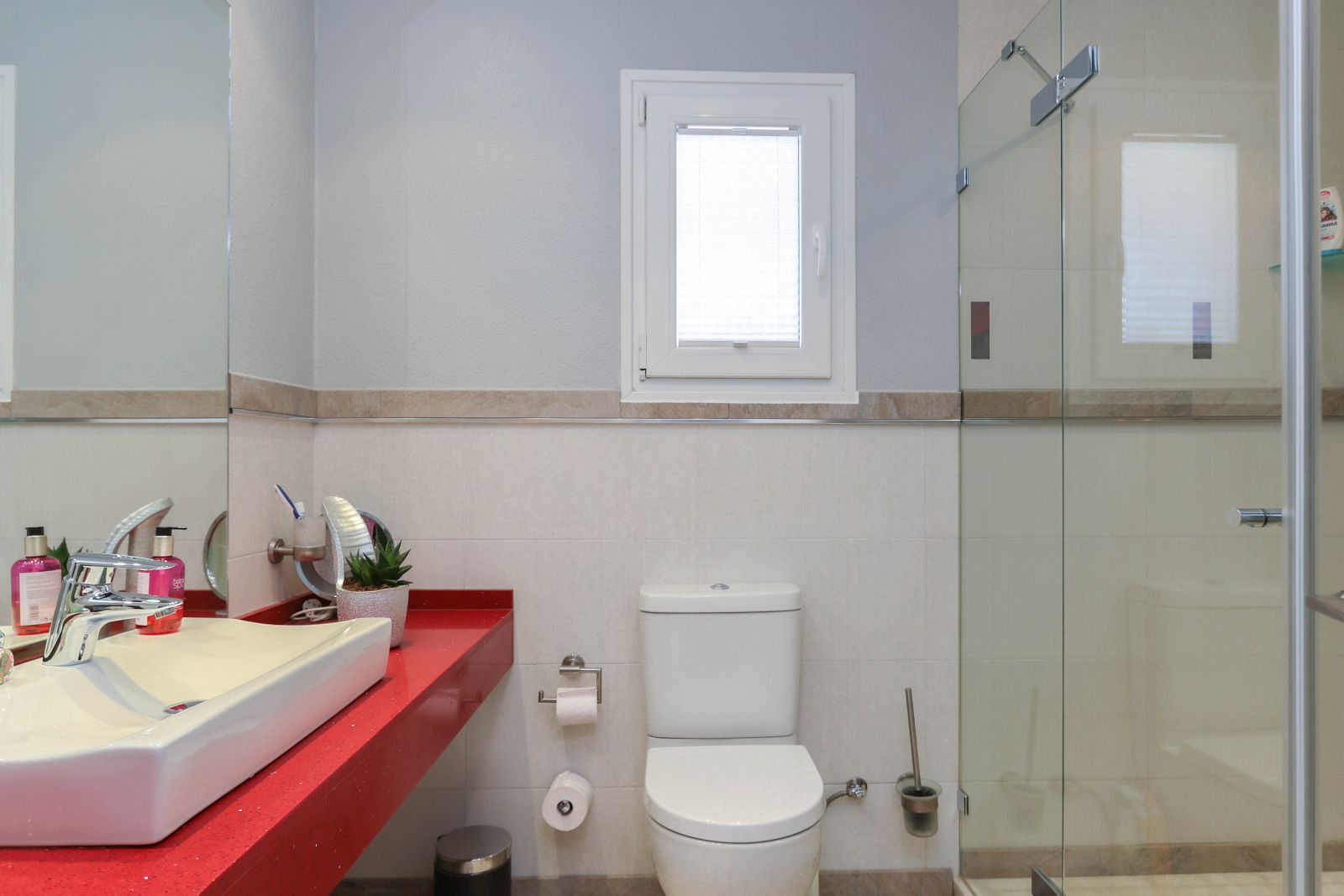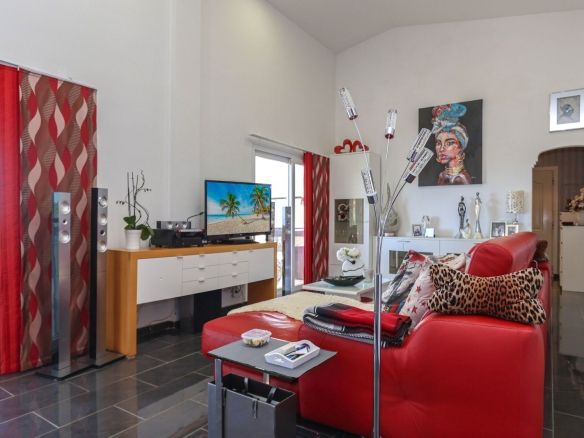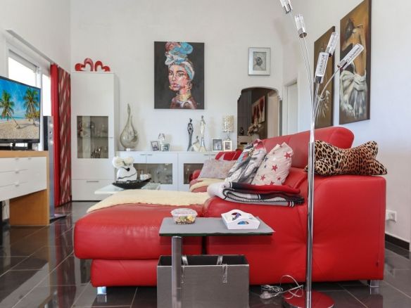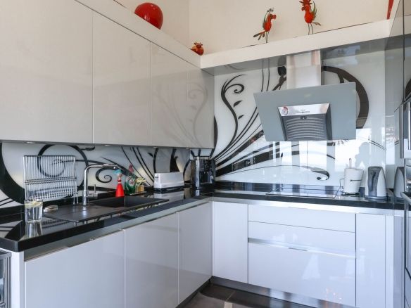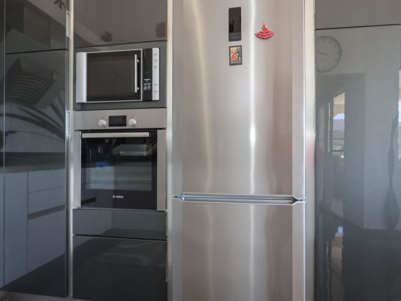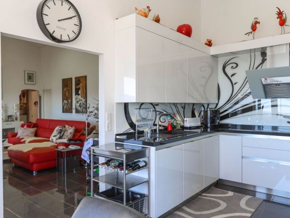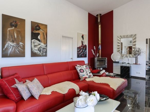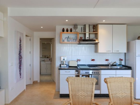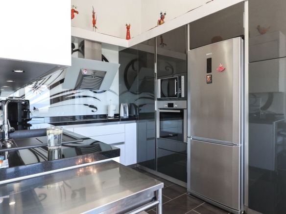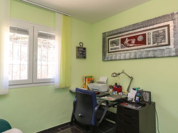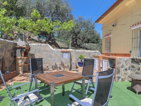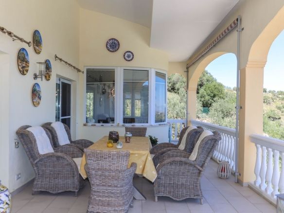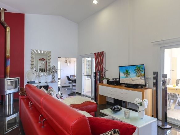 The house is built on two levels. The main accommodation is located on the the top level with the separate apartment sitting below. A staircase leads upto the front door with access to the rear shady terrace. Entering into the Villa you are immediatley impressed by the quality of the finish. To the right is the guest bathroom and to the left Bedrooms 3. Walking from the hallway into the bright lounge with high ceilings and two sets of patio doors the room feels light, airy and welcoming. A wood burning stove is located in the corner to provide winter heat. Both set of patio doors lead to the large covered terrace which sits to the front of the property, this is the most wonderful spot to sit and relax and enjoy the beautiful views.