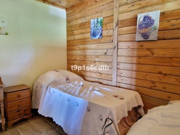 The property consists of two main houses: A main 3 bedroom one (from which 1 is now used as study) and 2 bathrooms, and another 2 bedroom house with additional bathroom. Both units are constructed to an exceptionally high building standard, produced in South Africa from so-called “Iron Tree” – extremely hard and resistant to insects and mold. Houses were produced and prepared for transport by sea to Spain and then assembled on the plot, in Monda.
