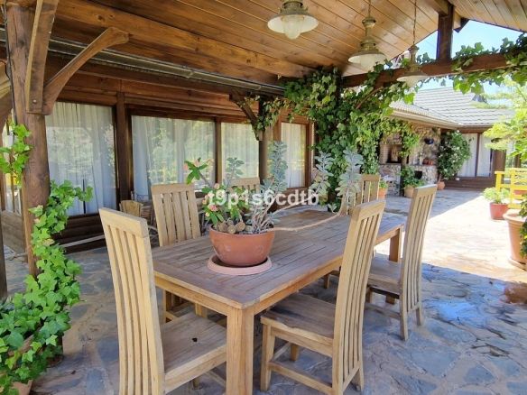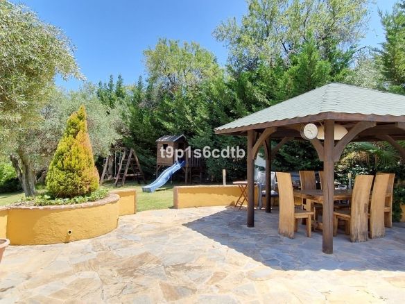 It also counts on a separate pool casita with Hamam (Turkish bath), bathroom and living room; and 50m2 garage for 2 cars build in an Andalusian bricks’ style; car shelter for 4 cars just near electric remote driven gates. An extra concrete build storage also can be found nearby. Lovely swimming pool heated also for wintertime use, dining area and BBQ to enjoy “al fresco” meals, playground for kids, hens' house and beautiful landscaped gardens, also with own orchard area.
