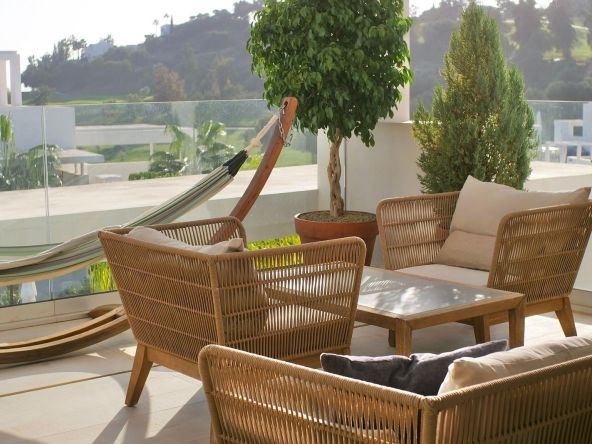 On entry there is access to the main living space which boasts large windows looking out over the rear of the complex, and a patio door which gives access to the 30 m sq terrace spanning the width of the property.