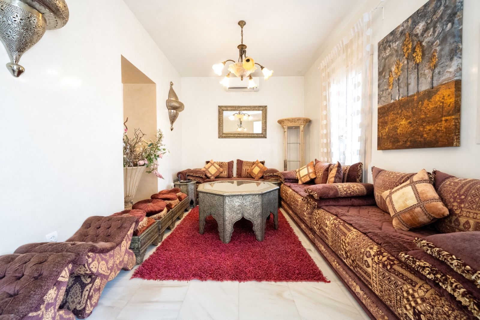 Inside, the finca features bright open living spaces with tall windows that fill the rooms with natural light. The main living area connects seamlessly to the dining space and a modern kitchen designed for entertaining. Three spacious bedrooms on the main floor and a peaceful master suite upstairs offer comfort and privacy. A rooftop terrace, private courtyard, and multiple outdoor dining areas make this home ideal for relaxed Mediterranean living.