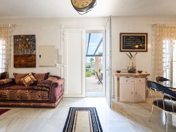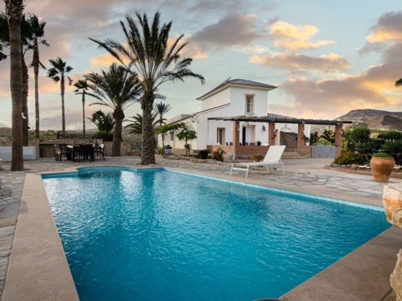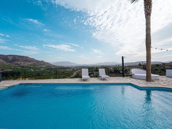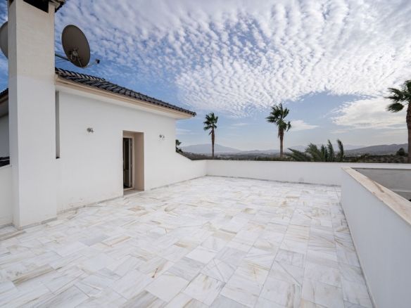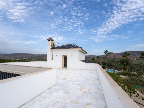 The estate includes two large outbuildings for vehicles and storage, a children’s play area, and a tiled pool terrace surrounded by palms. With its stunning views, strong rental potential, and easy access to nearby villages, Finca Pizarra is the perfect blend of luxury, nature, and investment opportunity in the heart of Andalucía.