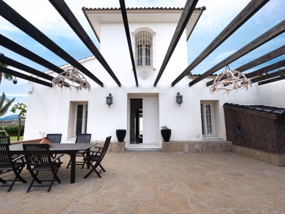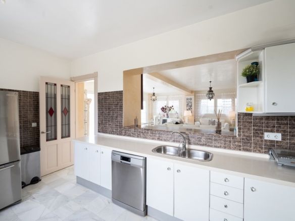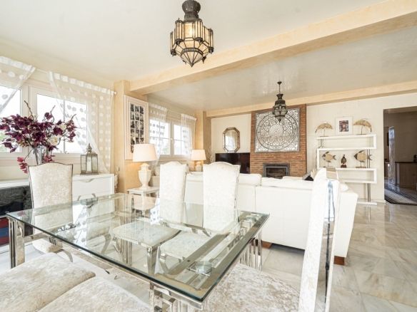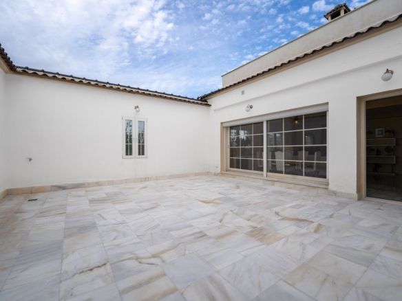 Inside, the finca features bright open living spaces with tall windows that fill the rooms with natural light. The main living area connects seamlessly to the dining space and a modern kitchen designed for entertaining. Three spacious bedrooms on the main floor and a peaceful master suite upstairs offer comfort and privacy. A rooftop terrace, private courtyard, and multiple outdoor dining areas make this home ideal for relaxed Mediterranean living.