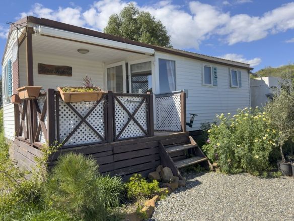 The main residence is a charming 1-bedroom, 1-bathroom home, featuring spacious terraces that showcase stunning panoramic mountain views. Additionally, the property includes a 2-bedroom, 1-bathroom mobile home, providing flexible accommodation options for guests or rental potential.