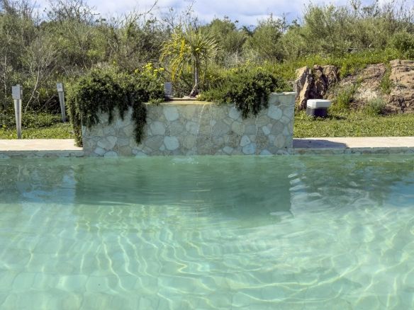 A swimming pool enhances the outdoor living experience, perfect for enjoying the serene surroundings. The property is well-equipped with a water filtration system, multiple water deposits (20,000L + 10,000L), a private pond with capacity of 40,000 ltrs and a private well. Mains electricity is also connected.