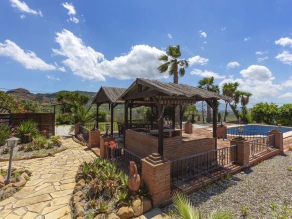 This finca set in an elevated position has impressive mountain views all around it. The garden is split into different areas each with its own beautiful vibe. Stylish barbecue area by the pool is great for relaxing and welcoming guests. Main house has three bedrooms plus two bathrooms. The guest house has a large studio plus lovely internal winter terrace. Property and pool need a bit of attention. Excellent location being only a few minutes drive to both Pizarra and Alora. Malaga is 30 minutes away.